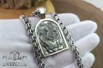 Также можем изготовить другое ушко для данной подвески или внести коррективы в изделие по Вашему индивидуальному запросу. Комплект выполнен из серебра 925 пробы с чернением и включает массивную подвеску-ладанку и цепочку плетения «Бисмарк».