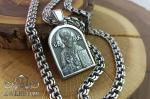 Серебряный комплект: ладанка Николай Чудотворец и Святая Троица с цепью Бисмарк