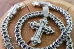 Мужской серебряный набор: крест с распятием 40 грамм и цепочка Рамзес 120 грамм