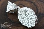 Обратная сторона украшена декоративным орнаментом с плавными растительными линиями и симметричными элементами. Поверхность аккуратно обработана, что делает изделие эстетичным со всех сторон. Ушко оформлено с узорным рельефом и гармонично дополняет общий дизайн.