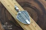 Кулон выполнен в форме щита, символизирующего силу и защиту. Универсальный дизайн гармонично дополняет как повседневный, так и классический стиль. Крупное ушко позволяет носить подвеску на цепочках разной толщины. При необходимости мы можем изменить размер ушка или изготовить изделие с учётом ваших пожеланий.