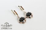 Серебряные серёжки с чёрными камнями для девушки (золотые вставки)